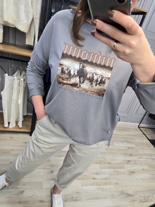 Shirt Bluse Agnes - Minouu Pferde UNI grau