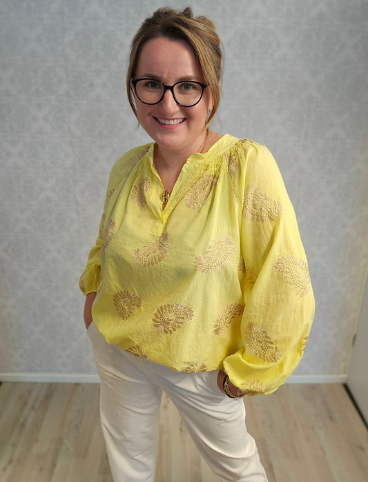 Bluse Stickerei gold